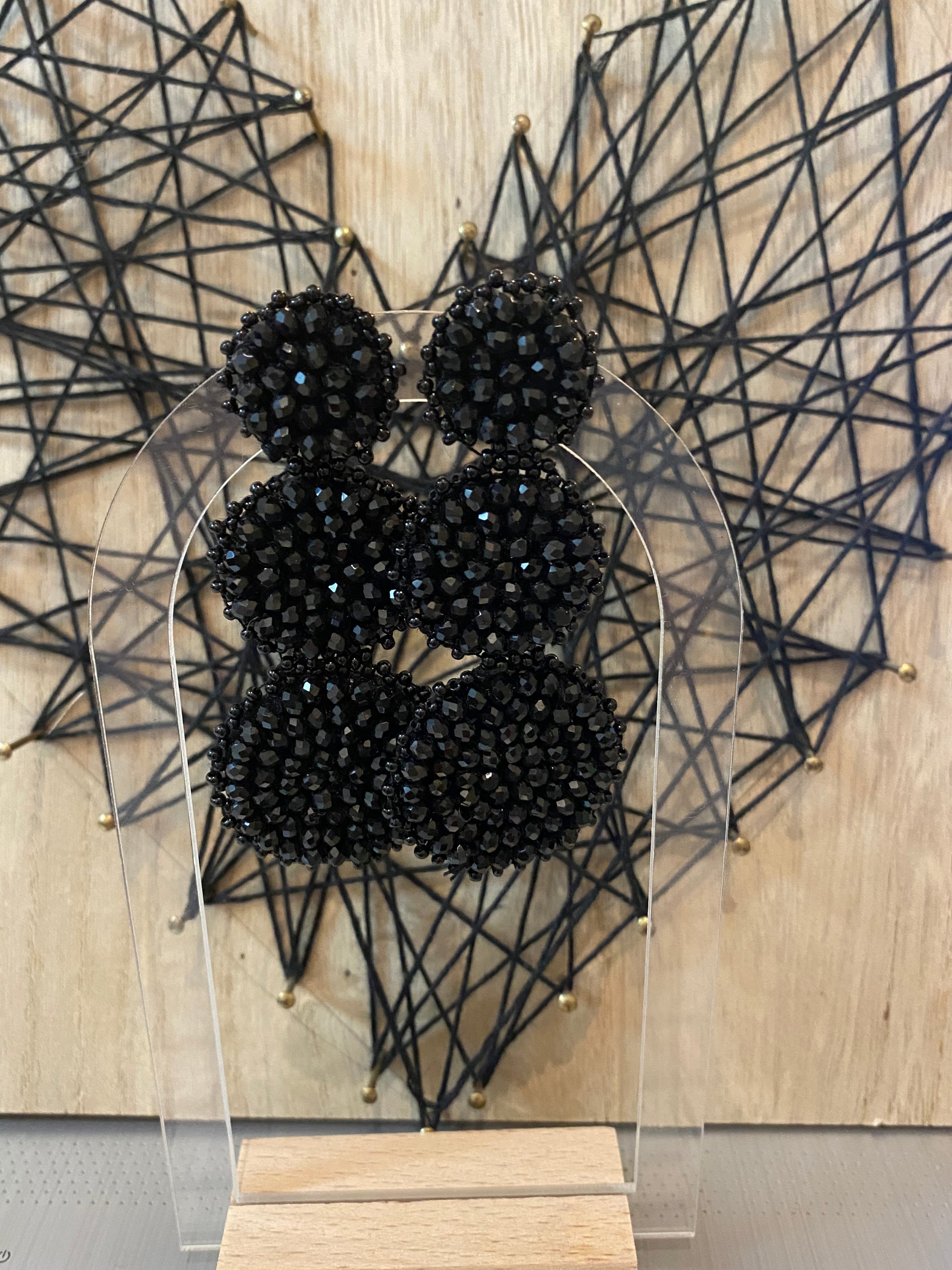 Boucles d'oreilles SISSI tissées en perles de cristal noires