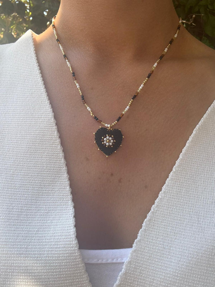 Boucles d'oreilles puces à cœur perlé Faustine - Lovelika