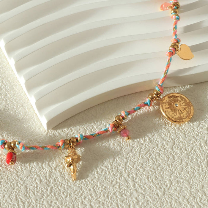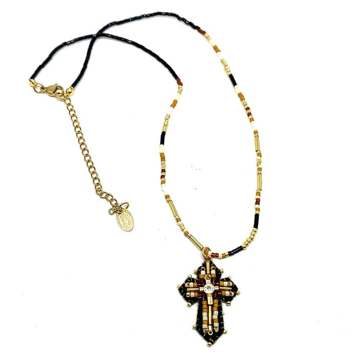 Collier chaine émaillé acier inoxydable doré avec croix strass