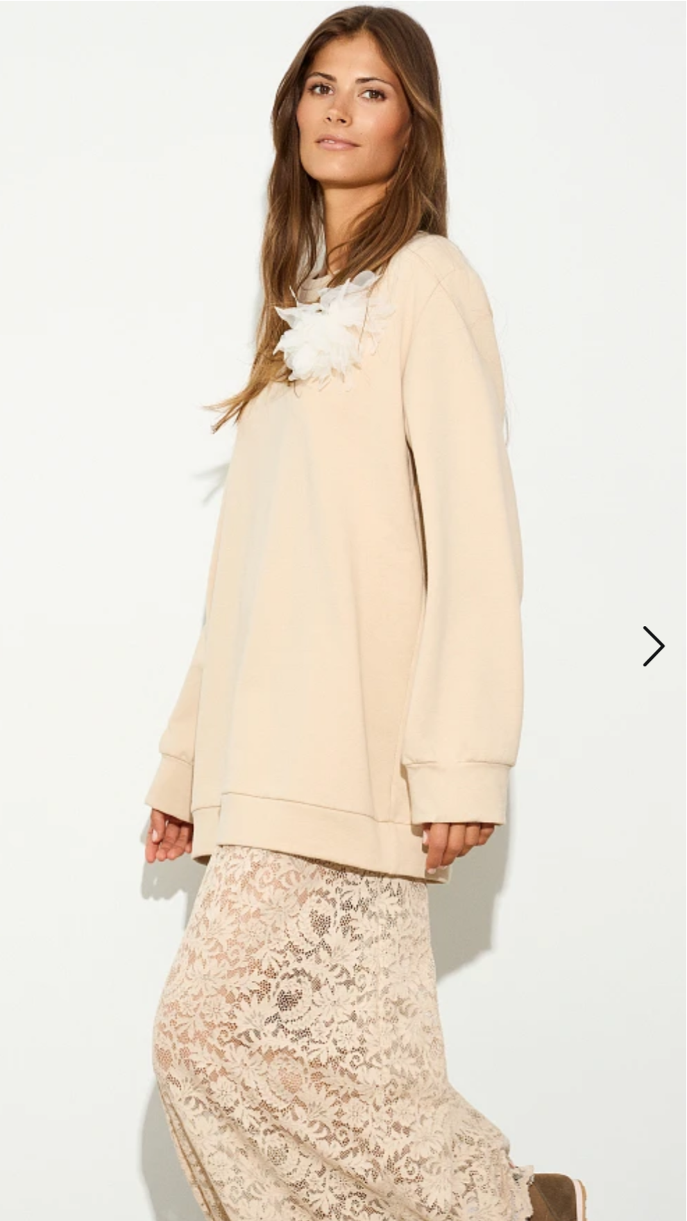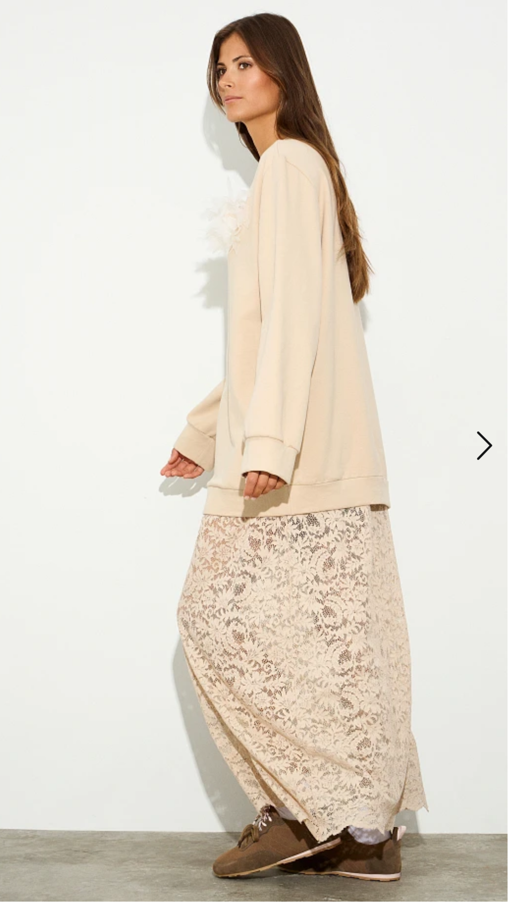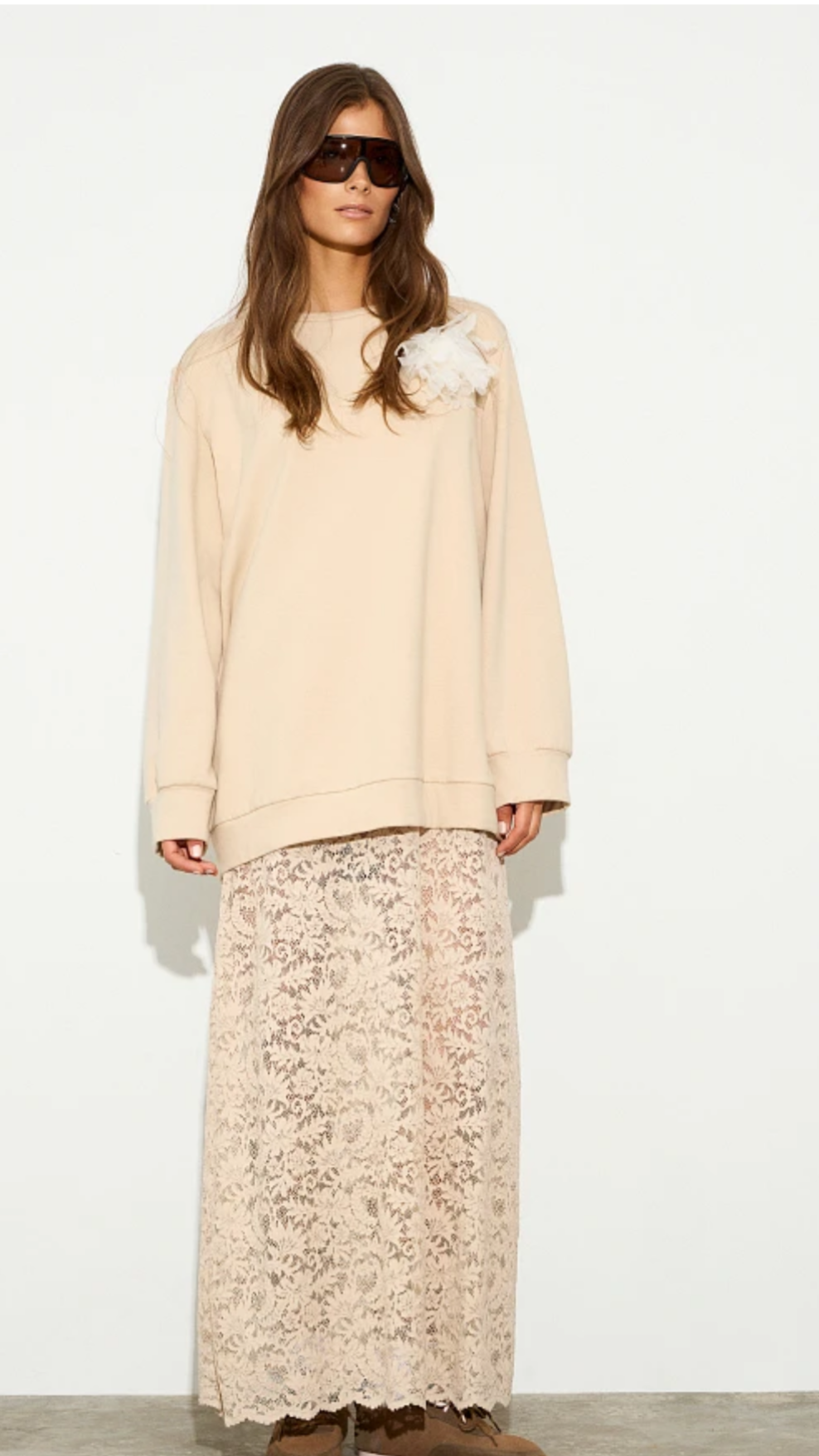 Ensemble écru Robe longue en dentelle et sweat-shirt long à col rond avec broche fleur (2 pièces)