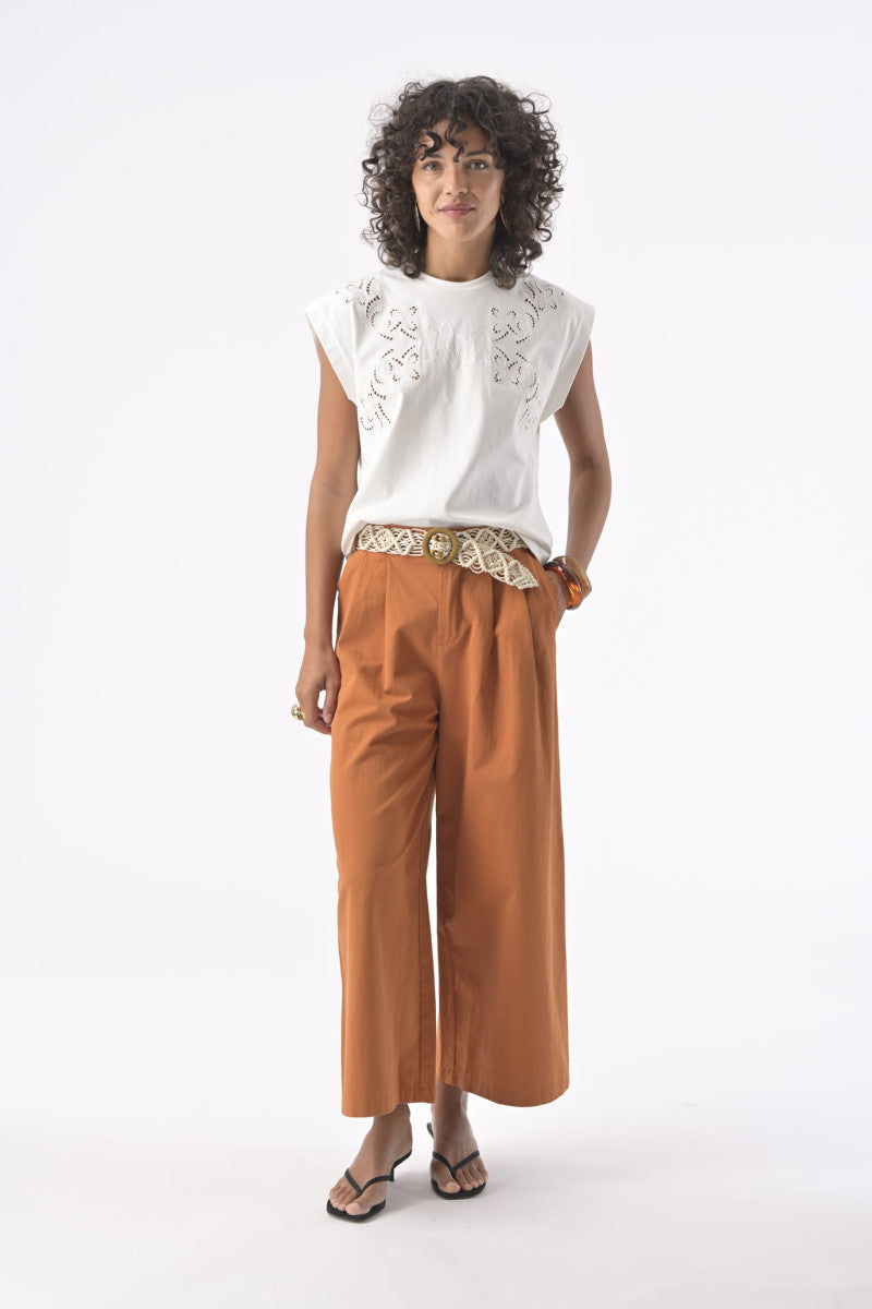 Le t-shirt Matteo revisite le basique du vestiaire avec une touche de caractère grâce à ses détails de broderie ajourée placés sur le haut du buste. Sa coupe droite et confortable en fait une pièce facile à porter au quotidien. Doté d’un col rond classique et de manches courtes légèrement structurées, il offre une silhouette moderne et décontractée. Les broderies délicates créent un jeu de motifs subtil qui apporte relief et originalité, tandis que l’inscription «Souk Lover» au centre ajoute une signature graphique à la pièce. Confectionné en 100 % coton, il assure un toucher doux et une belle respirabilité pour un confort optimal.