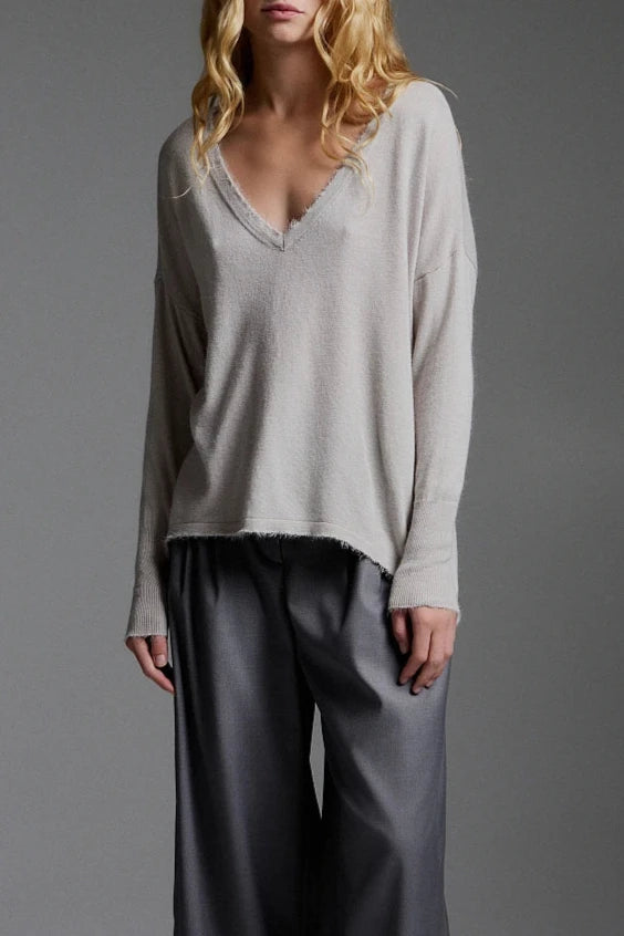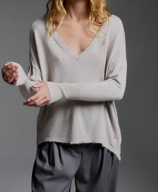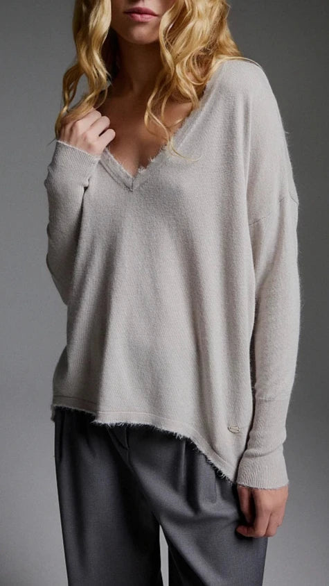 Pull à manches longues, court devant long derrière, encolure V, coupe classique, toucher doux