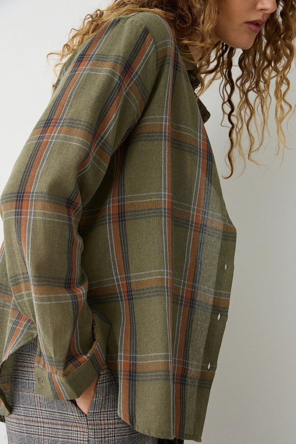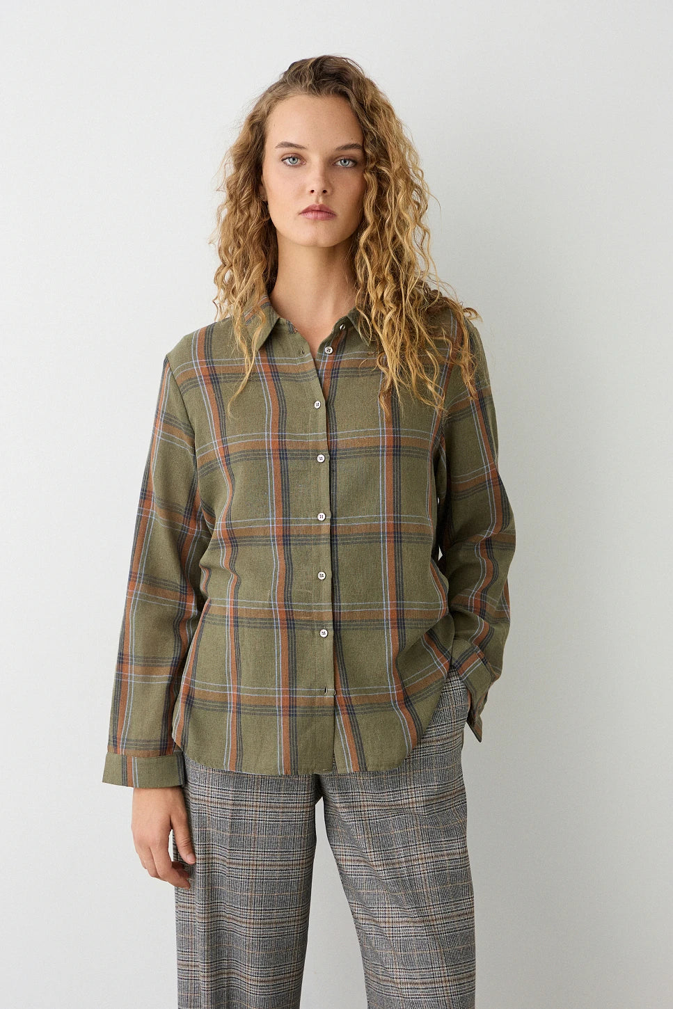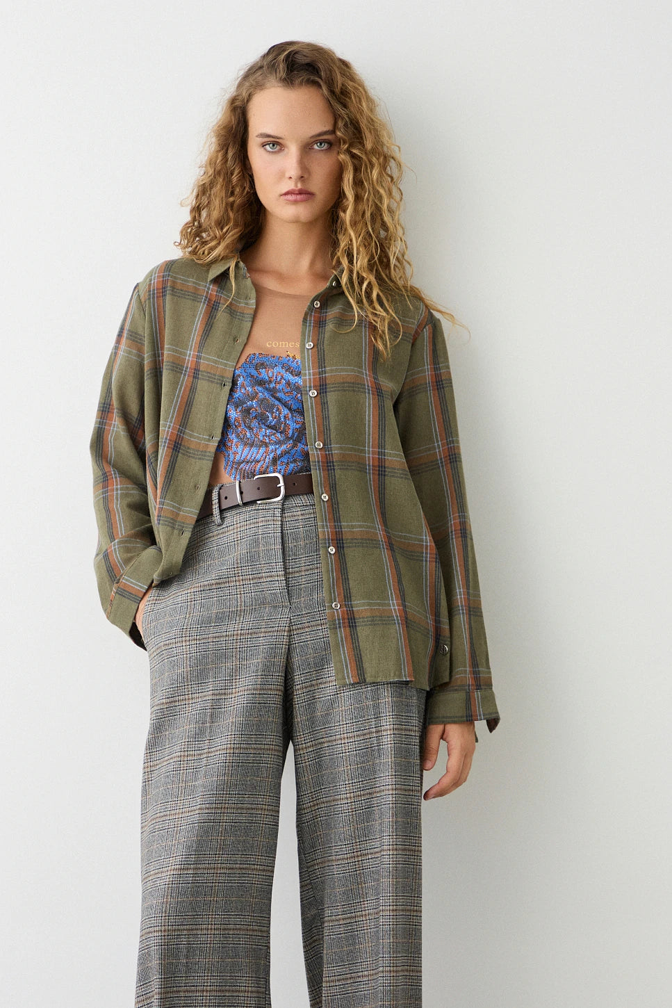 Chemise à carreaux avec imprimé, manches longues, fermeture boutonnée sur le devant, coupe droite