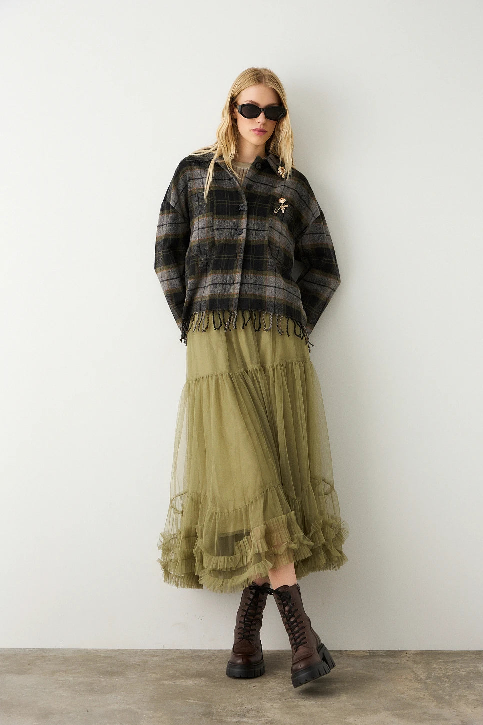 Veste à carreaux et broches bijoux - BSB